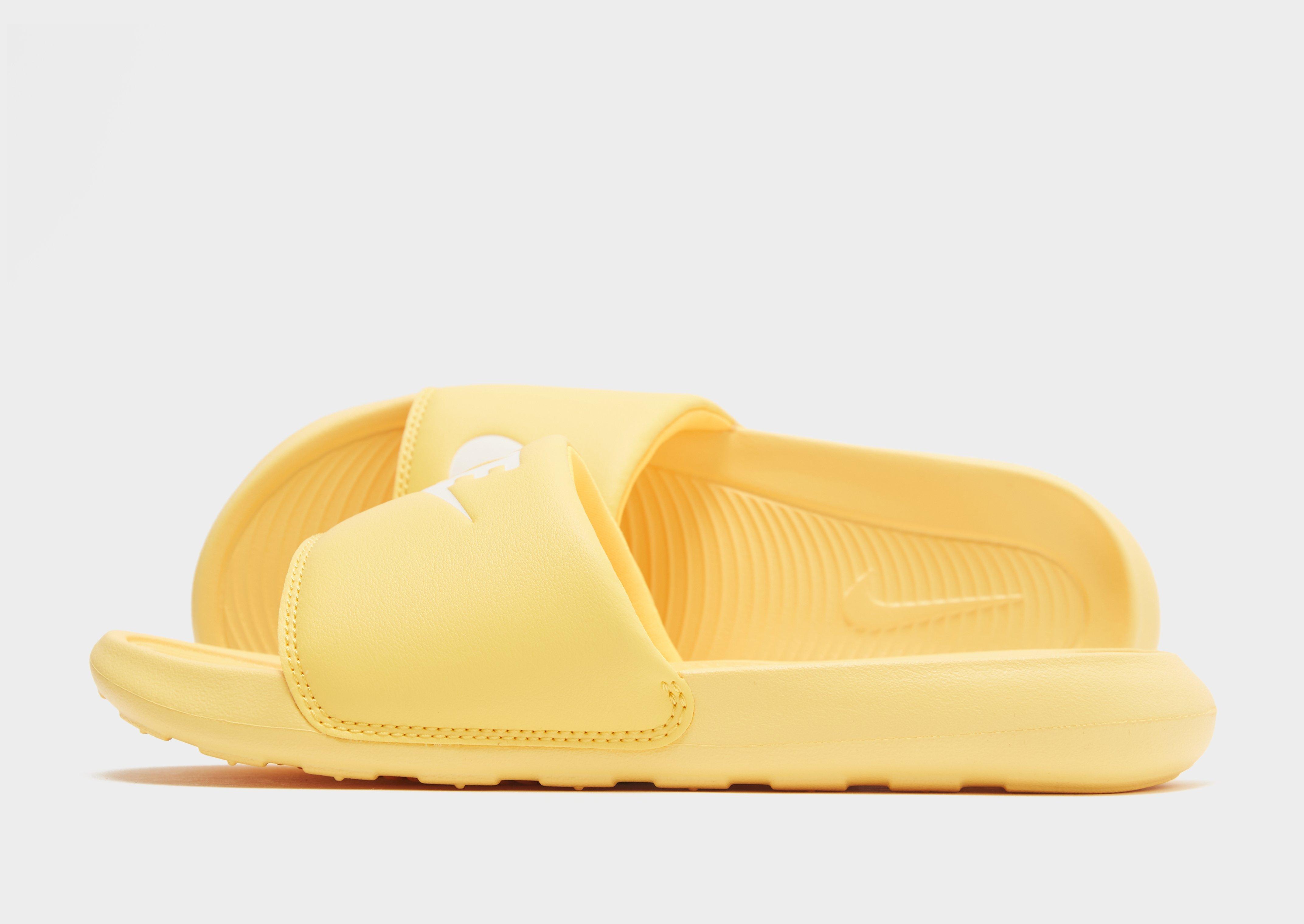 Užijte si pohodové dny v dámských pantoflích Victori One Slides od značky Nike. Pantofle jsou ve žlutém provedení a byly vyrobené ze syntetického materiálu, který zajistí dlouhotrvající komfort. Mají polstrovaný popruh přes nárt a tvarovanou stélku. Celek je posazen na pěnové mezipodešvi, která poskytuje odpružení a tlumení nárazů během pohybu, zatímco gumová podrážka dbá o stabilní kontakt s povrchem. Model je doplněn kultovním Nike brandingem.