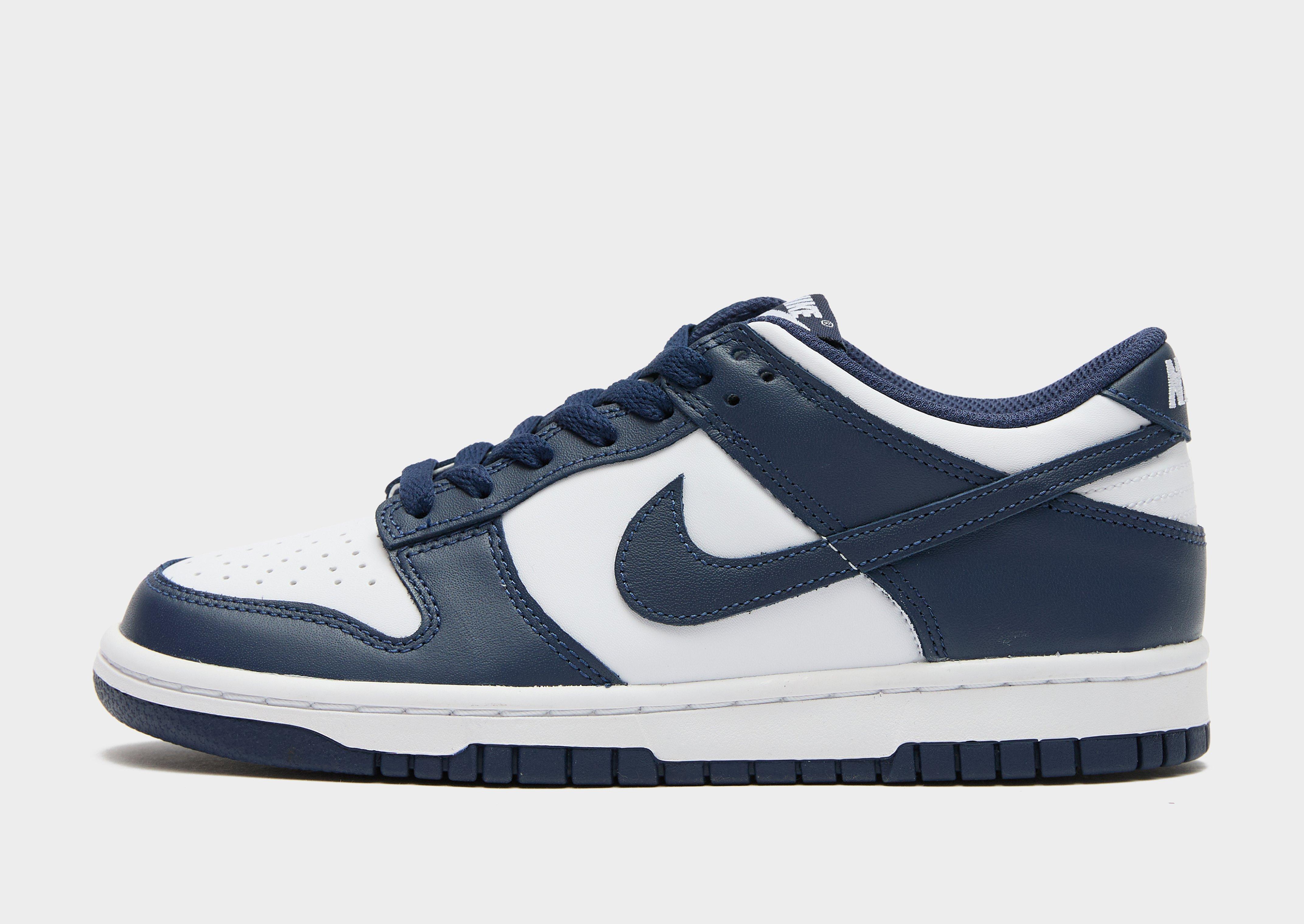 Obujte si ikonické tenisky Dunk Low z 80. let od Nike. Tyto tenisky v bílé a tmavě modré barvě jsou vyrobeny z hladké přírodní a syntetické kůže, která zaručuje dlouhou životnost. Jsou vybaveny tkaničky pro pevné uchycení, polstrovaným límcem pro podporu a prodyšnými perforacemi pro ventilaci. Pod nohama mají odolnou gumovou podrážku pro trakci a jsou doplněny charakteristickým logem Swoosh.